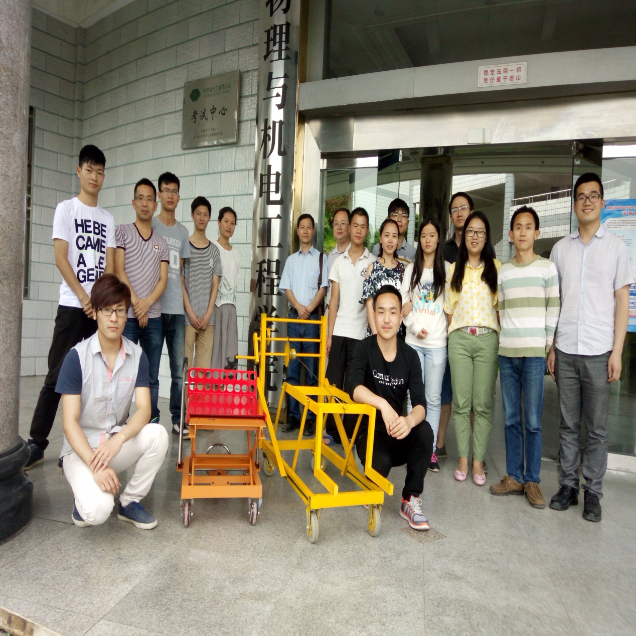 机械专业是学校新开的工科专业,机械学子这是第一次参加如此重大的国家A类赛事,得到了院领导的高度重视和大力支持,彭金璋院长及各位领导在备赛期间,非常关心作品的进展,多次现场观看和指导作品的设计和制造,比赛出发前叮嘱大家要注意安全,注意方法,要自信大方,最终我们的参赛队伍在初次参赛中取得优良的成绩。