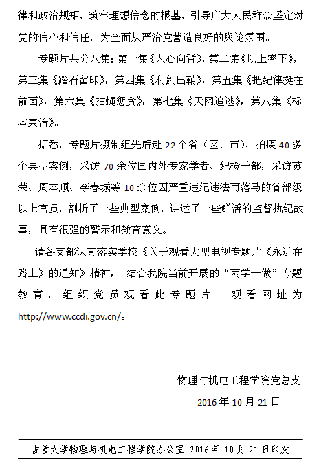 院发[2016]21号--关于观看大型电视专题片《永远在路上》的通知