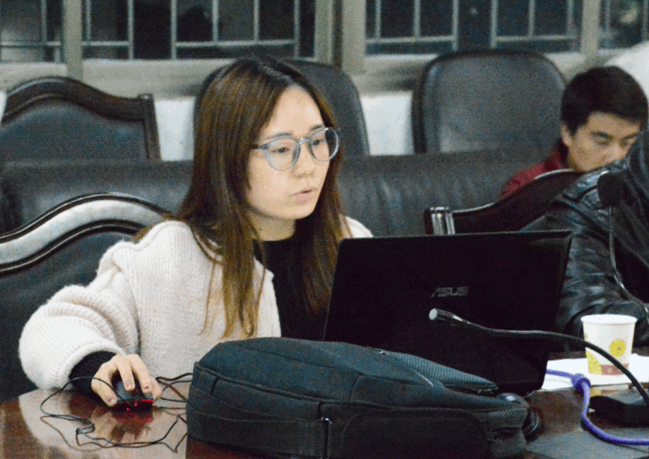 图为 研究生陈秀丽在进行主题报告