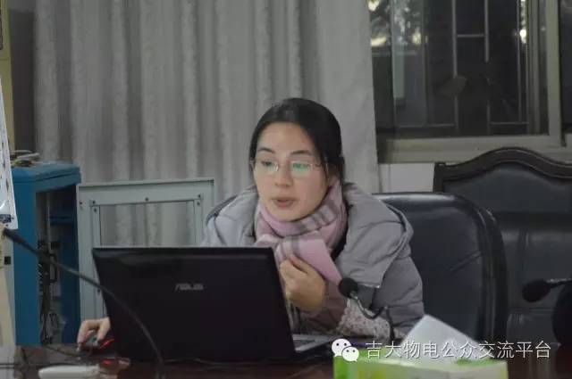 而后就进入了报告的关键:研究内容。研究生谢素君向大家展示了她研究的模型图,并由此展开了不同缺陷对应的缺陷态,单胞色散关系以及超胞线缺陷带结构和线缺陷波导。每一个高深的知识都生动又清楚的表述出来,通俗易懂,让人易于接受。到了最后的提问环节,大家积极参与,现场气氛活跃。