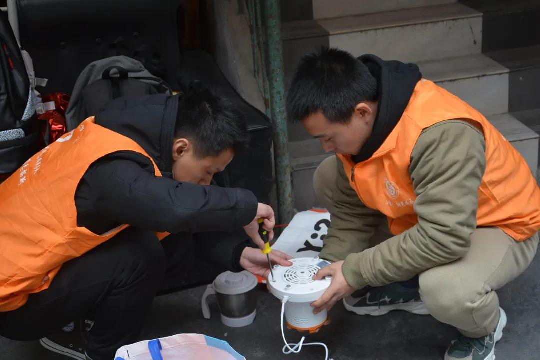 11月29日,我院小桔子·阳光成长志愿服务队和吉首大学电子技术协会在石家冲荣昌坪社区配件厂开展电器义务维修活动。