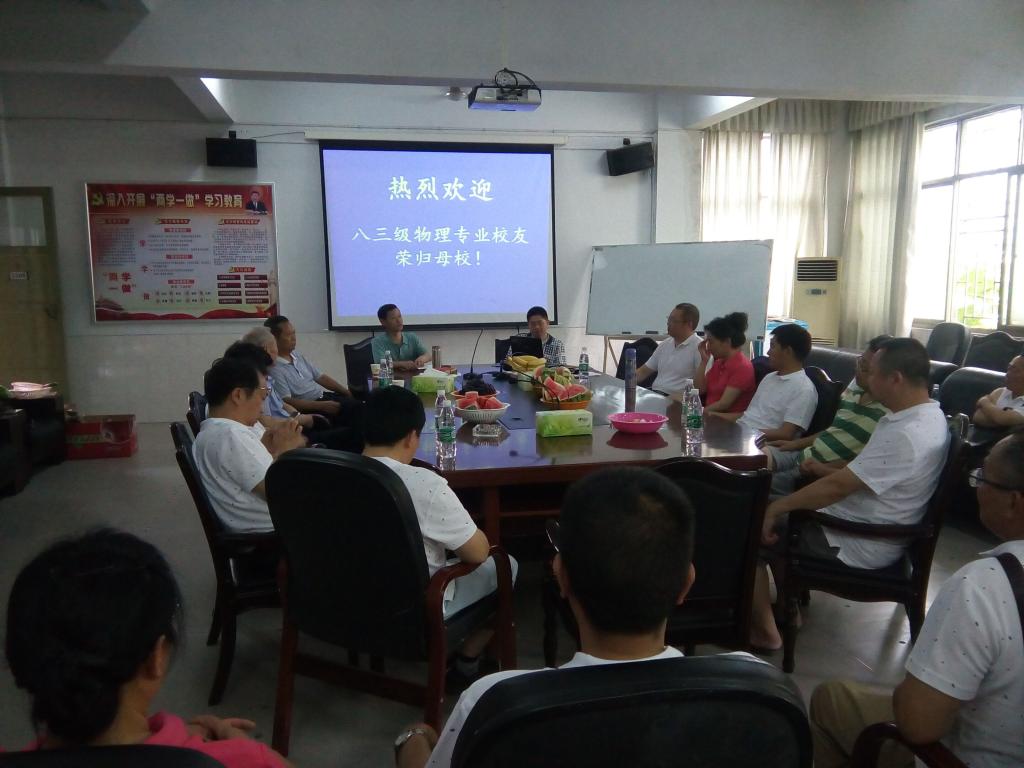 7月16日,william威廉英国官网83级物理班校友返回母校举行毕业三十周年聚会,并于上午10:00在第三教学楼三楼会议室举行了座谈会。物电学院副院长彭金璋、副院长叶伏秋、吉首大学统战部部长黄生祥、吉首大学工会副主席吴恒忠、83级物理班班主任鲁邦德老师、退休教师徐学仕老师及相关物电学院老师出席了座谈会。